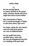 Jean Kadmon, a painter and sculptor as well as poet and novelist, thought that her beginnings in visual art were during a short stint in the Artist Village Ein Hod near the Mediterranean in Israel. But teen age photographs turned up in an old trunk. They were made with a large ordinary Kodak camera of the “thirties” with its great lens, and printed in her own dark room with a sink. In fact, she won first prize in a photo contest in Edmonton Alberta where she lived. The prize photo happened to be of a pristine oil sand bluff and pine trees near today’s oil boom town, Ft. McMurray on the Canadian Athabaska River. In the thirties, Jean Kadmon’s father, a geologist, had tried to set up an oil-sand plant not far from the bluff. WWII put an end to his endeavors and, today, Jean Kadmon because of her marriage, too, is a writer and artist in Jerusalem, rather than a billionaire. The recent small oil paintings of a model - Nelly No. 7 and Nelly No. 8 – are made with wild coloring and lumpy surfaces specifically designed to show up well on a screen of today. However, in prints without color, the portraits are not wild but tone perfect. This might be expected of a painter who when very young, became alert to visual art as a black and white photographer…..